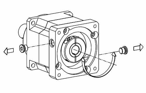松開(kāi)行星減速機(jī)法蘭中的密封螺釘(或取下塞子)。然后轉(zhuǎn)動(dòng)夾緊環(huán),使裝置在行星減速機(jī)夾緊環(huán)中的螺栓的頭部坐落剛?cè)∠氯雍髽?gòu)成的孔的前面。