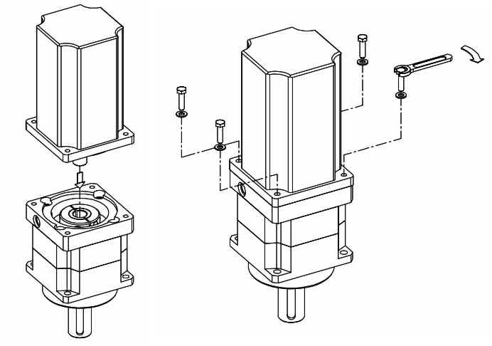 一個(gè)十分重要的過(guò)程是電動(dòng)機(jī)與行星減速機(jī)的結(jié)合。行星減速機(jī)必須十分嚴(yán)密地粘附在發(fā)起機(jī)上。電機(jī)和行星減速之間不得有間隙。應(yīng)運(yùn)用具有恰當(dāng)力的扭矩扳手?jǐn)Q緊將電機(jī)銜接到減速機(jī)的螺釘。